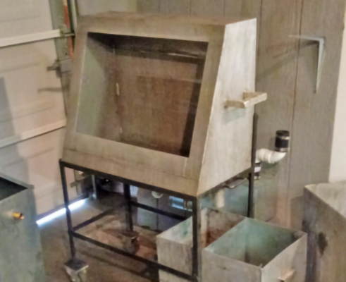 One piece of equipment we use for the projects is the “Pit Box”. We use this because the grease, waste, chemicals from cleaning these items must also be contained, captured and disposed of properly. The equipment is put inside our “Pit”, treated with cleaning chemicals, then power washed clean, down to bare metal. The “Pit Box” is only used for outside cleaning, almost any restaurant equipment can be cleaned in it. As is the case with our hood and filter cleaning, we’re able to capture the grease and waste, then pump it back into our sink filter box, which is sitting inside the kitchen sink. The majority of the nasty grease is then filtered and captured in the sink filter box, very little grease going into the restaurant’s grease trap or sanitation lines, and NONE of the grease or toxic chemicals is allowed to go on the ground and become pollution in our waterways.